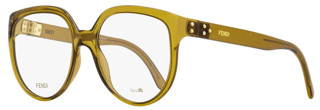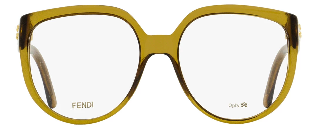 The Fendi 0421 optical frames feature an large butterfly shape suitable for women. The Optyl frame features an integrated saddle bridge and Fendi branding with stud details near the hinge. The Fendi eyeglass collection features an array of shapes and styles that are daring yet express a refined chic character. Please note these eyeglasses are provided with Demo Lenses in order to demonstrate the final appearance of your frames. Please visit your local Optometrist or Optician to replace with optical quality lenses.