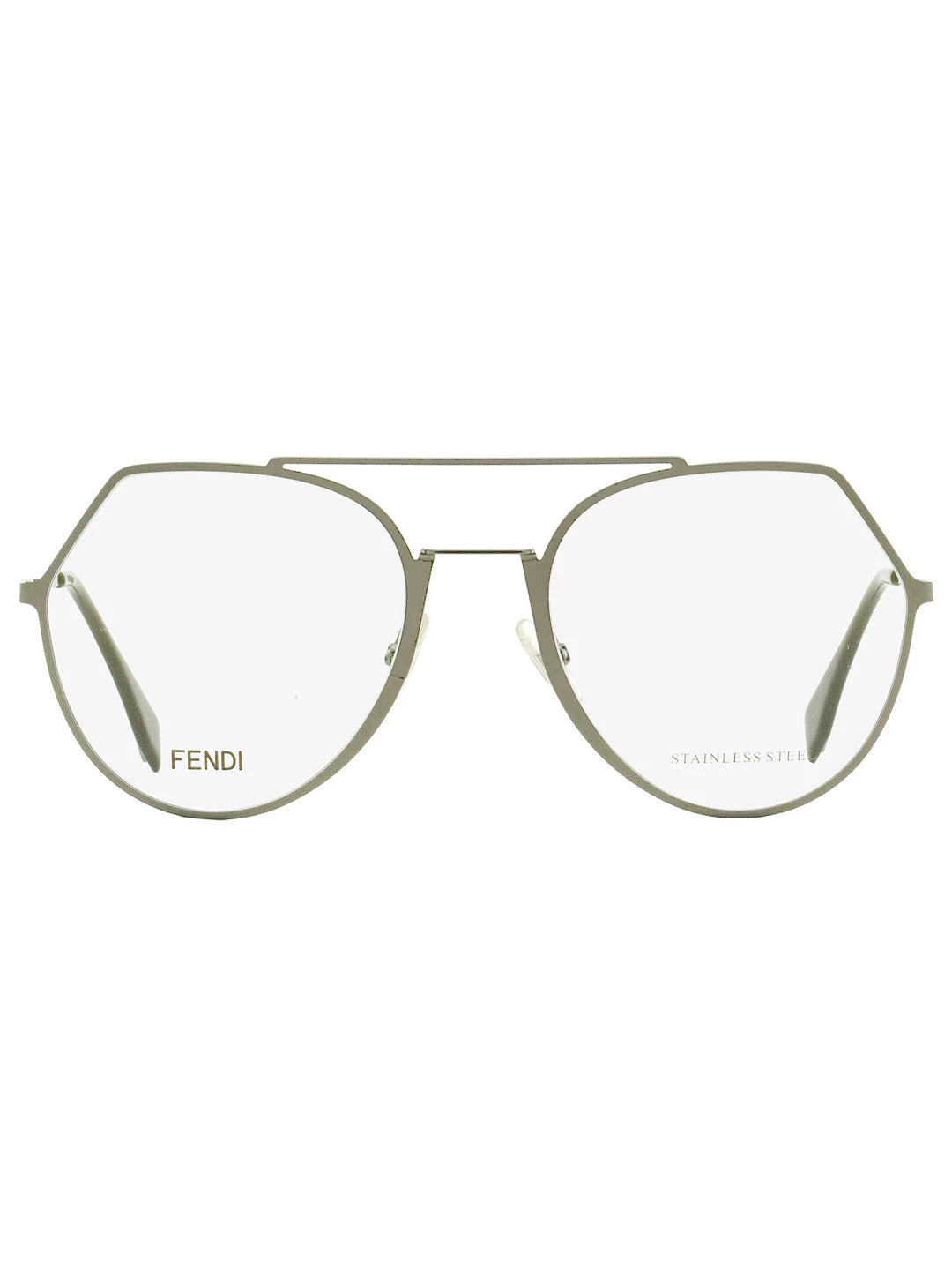 The Fendi 0329 optical frames feature a rounded geometric lens shape and double bridge for women. The stainless steel frame features a thin profile and subtle branding on the temples. The Fendi eyeglass collection features an array of shapes and styles that are daring yet express a refined chic character. Please note these eyeglasses are provided with Demo Lenses in order to demonstrate the final appearance of your frames. Please visit your local Optometrist or Optician to replace with optical quality lenses.