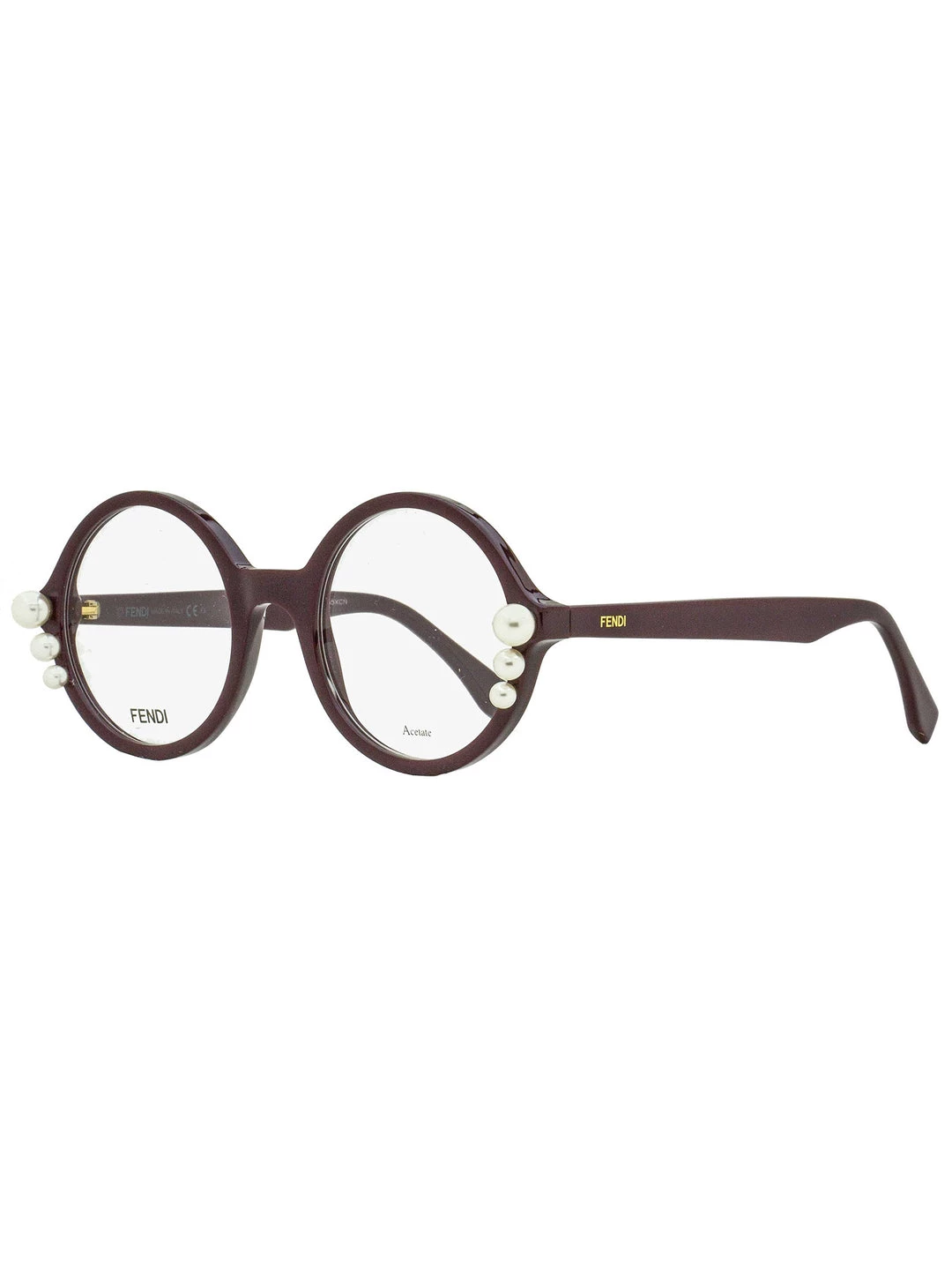 The Fendi 0298 optical frames feature a large round shape for women. The frame front is adorned with simulated Pearl details and subtle branding on the temples. The Fendi eyeglass collection features an array of shapes and styles that are daring yet express a refined chic character. Please note these eyeglasses are provided with Demo Lenses in order to demonstrate the final appearance of your frames. Please visit your local Optometrist or Optician to replace with optical quality lenses.