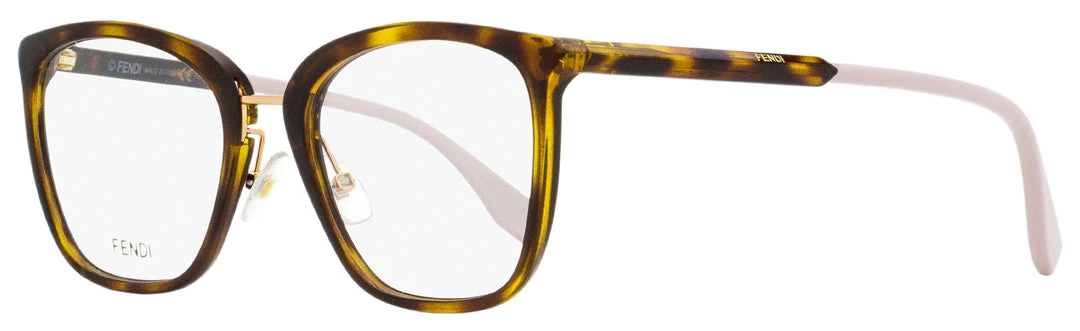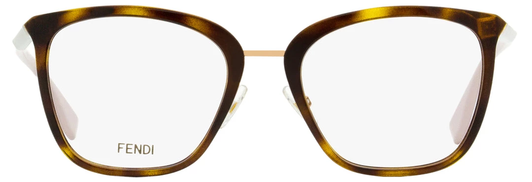 The Fendi 0455 optical frames feature a bold square lens shape with single metal bridge for women. The frame is accented with dual color tone temples featuring subtle Fendi branding on both sides. The Fendi eyeglass collection features an array of shapes and styles that are daring yet express a refined chic character. Please note these eyeglasses are provided with Demo Lenses in order to demonstrate the final appearance of your frames. Please visit your local Optometrist or Optician to replace with optical quality lenses.