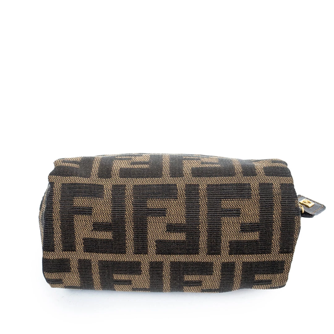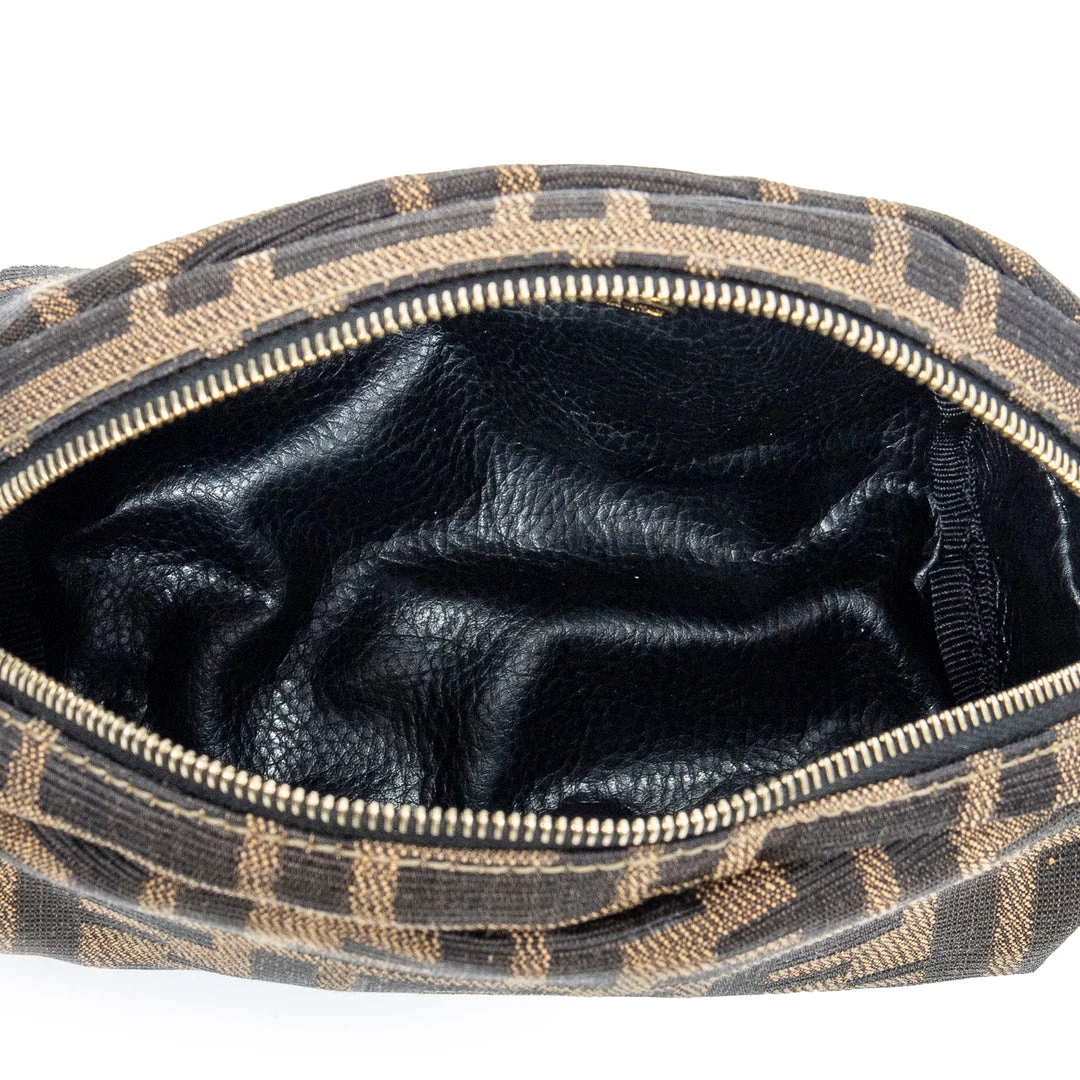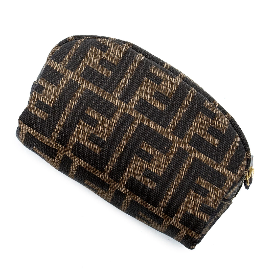 Fendi Pouch in Brown/Black Zucca Canvas and Gold hardware. Dimensions – 14*8*7cm. Serial number – 291.2636104. Inclusions – None.