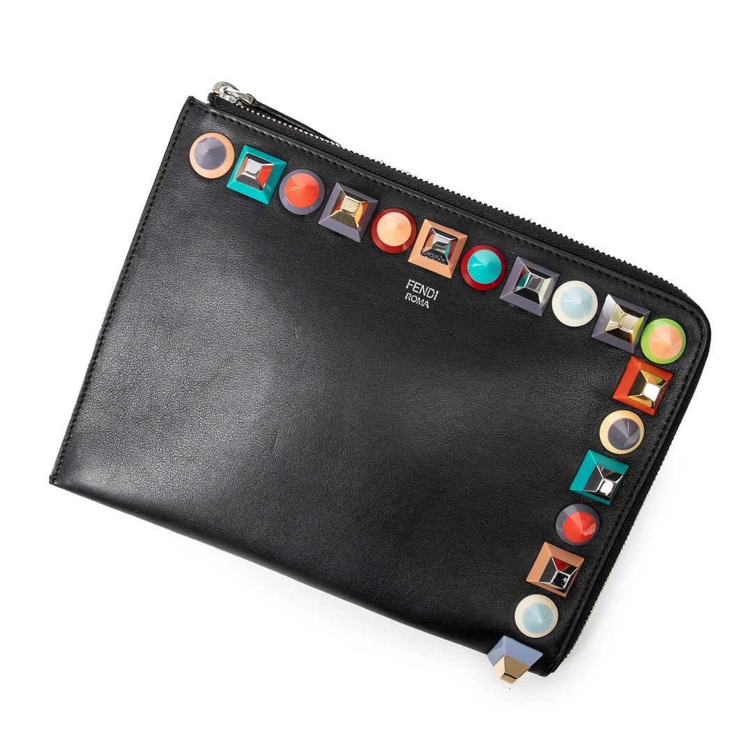 Fendi women Small Multicolor Studded Flat Clutch