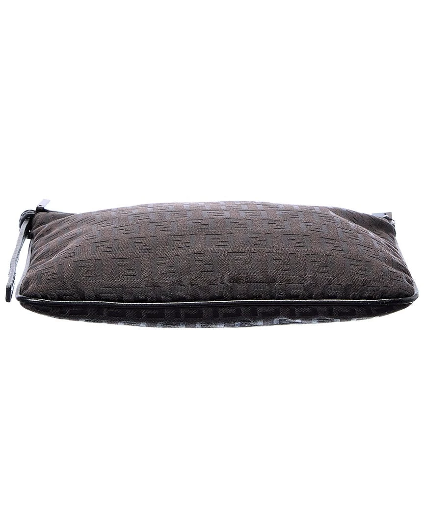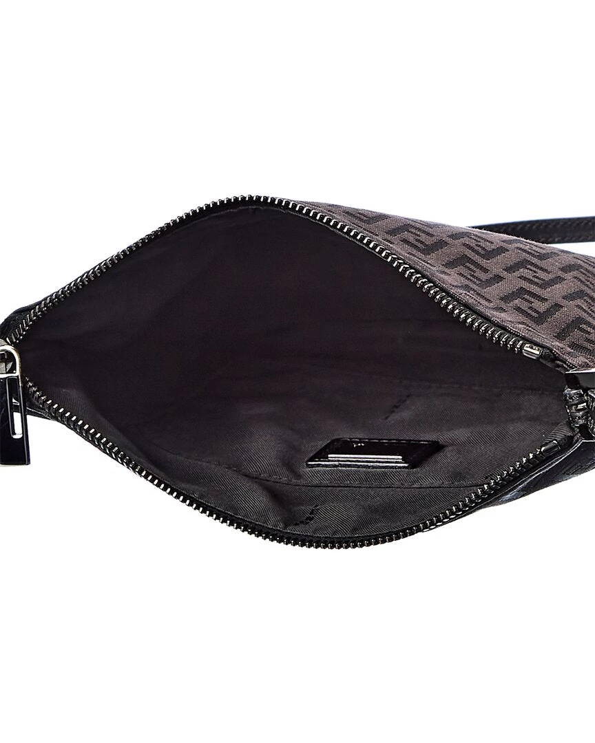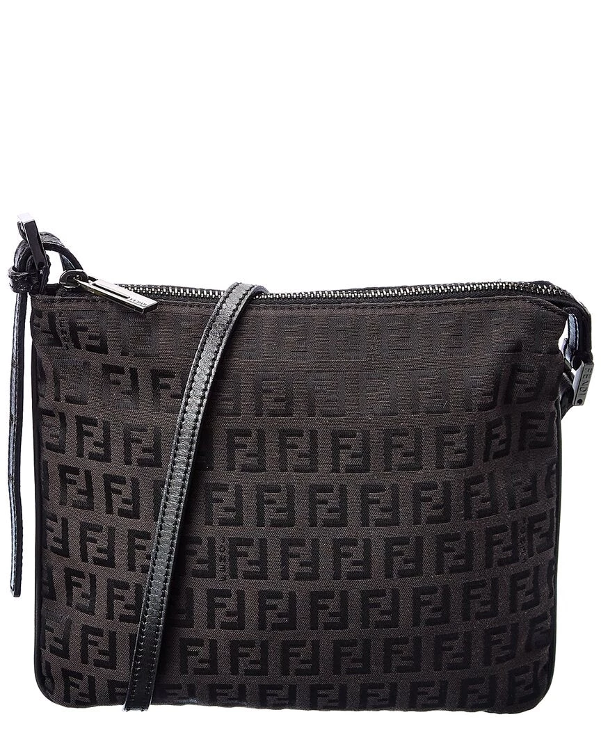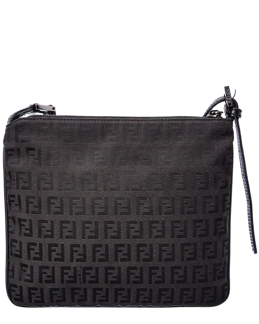 women FENDI Black Zucchino-Print Canvas Flat Messenger Bag (Authentic Pre-Owned)