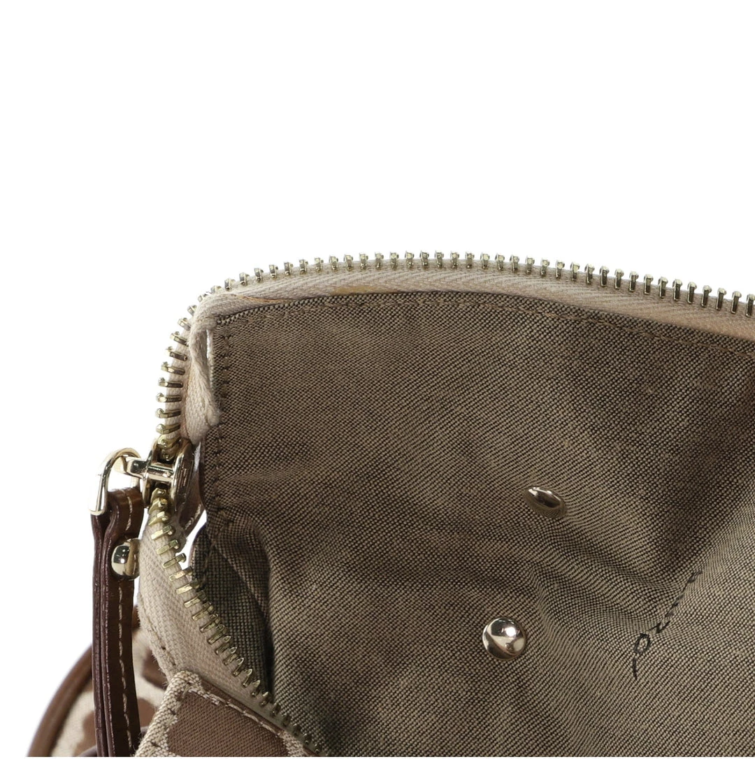 Condition Details – Minor wear and scuffs on leather trims, creasing on exterior and handles. Heavy splitting, peeling and cracking on handle wax edges, small glue stains underneath zipper tape, scratches on hardware.