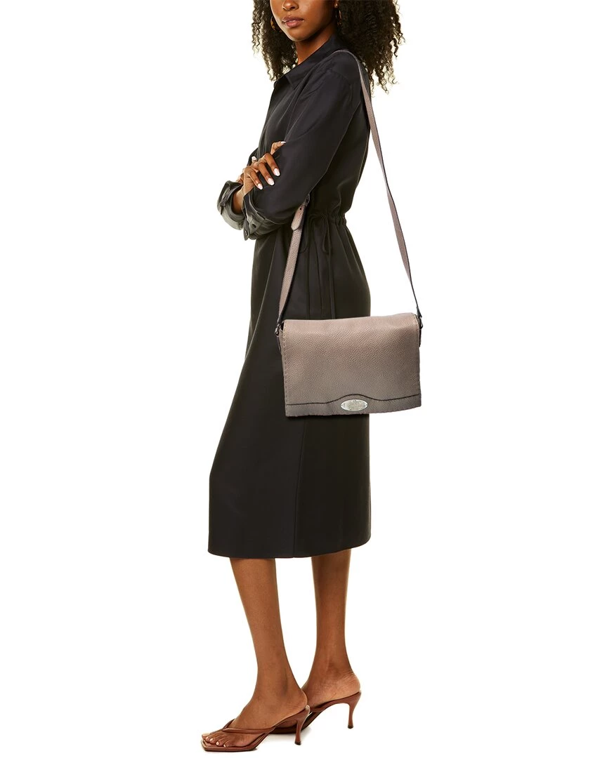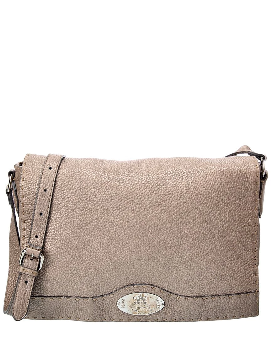 women FENDI Taupe Leather Selleria Crossbody (Authentic Pre-Owned)
